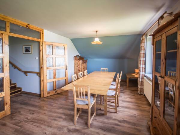Do dyspozycji gości są cztery pokoje. Każdy z własną łazienką wewnątrz pokoju. Oddzielne wejście dla gości, kuchnia w pełni wyposażona i jadalnia niezależna od gospodarzy, plac zabaw i parking dla gości. Do dyspozycji w całym obiekcie WiFi. Sosnowe meble w pokojach stwarzają domową atmosferę. W ogrodzie altana z meblami tarasowymi i grillem.