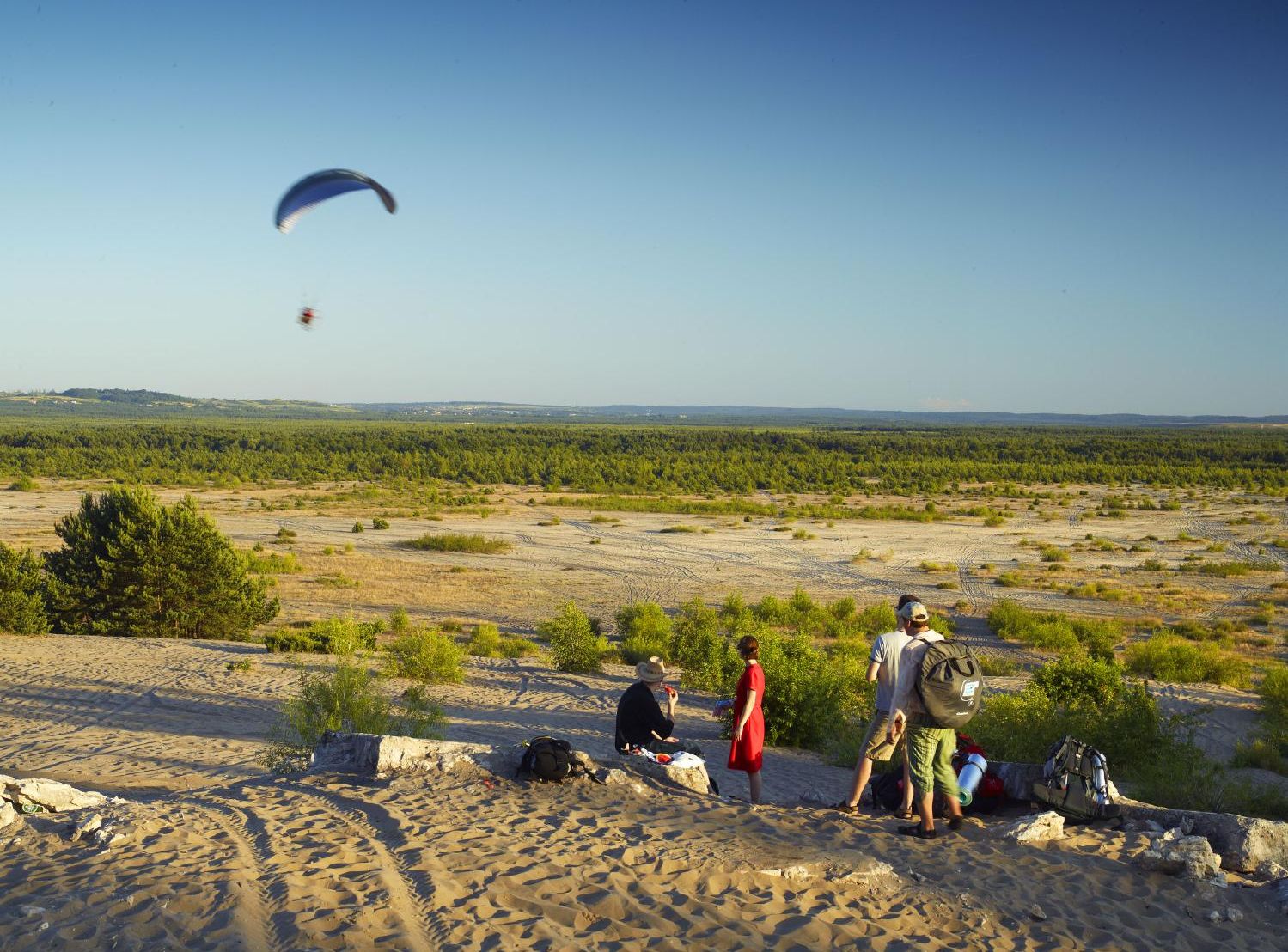 Błędowska Desert extending to the border of Silesia and Małopolska region. Desert took name from Błędów (district of Dąbrowa Górnicza) to Klucze and it is the largest area of quicksand in Poland and one of the largest in Europe. The sandy area is indeed much larger than the Błędów Desert itself.
