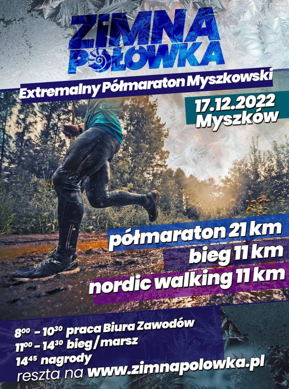 Zapraszamy Wszystkich biegaczy do aktywnego uczestnictwa w Biegach Zimowych w Myszkowie, a konkretnie Półmaratonie Myszkowskim, Biegu oraz Marszu Nordic Walking na na dystansie 11 km.
