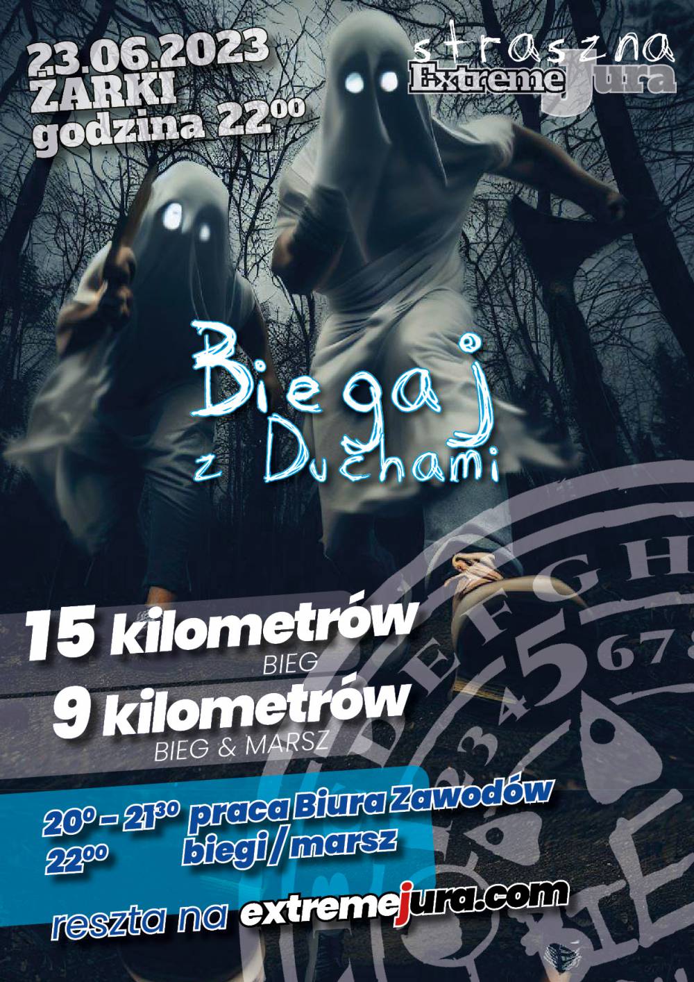 Strój w tematyce „duchowej” mile widziany! Zbierzcie swoją ekipę łowców duchów i zarejestrujcie się już dziś, aby zarezerwować miejsce w szeregach odważnych. Nie przegapcie tej niepowtarzalnej okazji, aby sprawdzić swoją odwagę i wytrzymałość w nocnym biegu pełnym duchów!