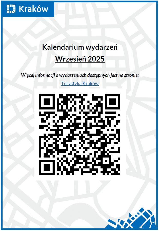 Zachęcamy do zapoznania się z Kalendarium wydarzeń Krakowa na wrzesień 2025, gdzie znajdą Państwo szczegółowe informacje na temat koncertów, wystaw, spektakli teatralnych, festiwali i wielu innych atrakcji.