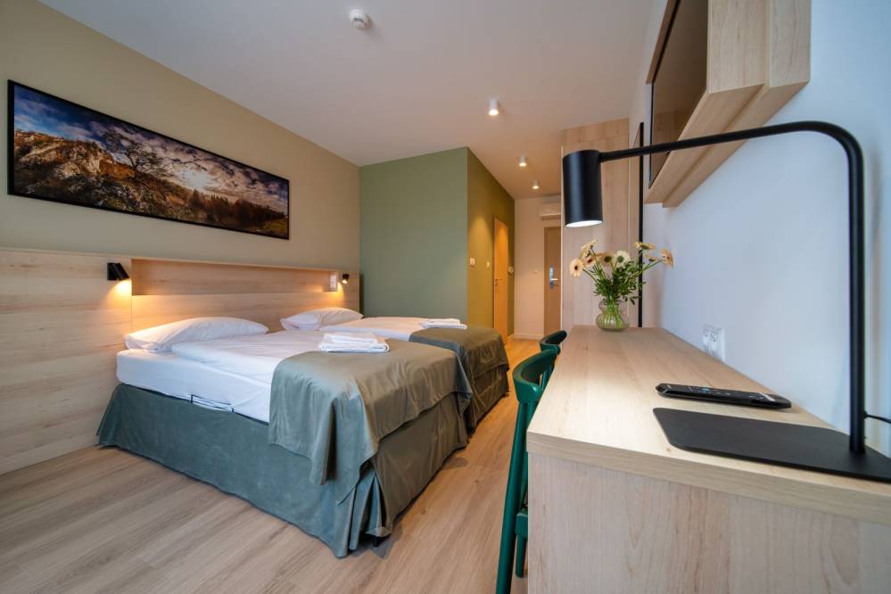 - 22 NOWE klimatyzowane pokoje na Jurze (z możliwością dostawek) w tym pokój przystosowany dla osób niepełnosprawnych oraz pokój studio rodzinny. Wewnątrz budynku znajduje się winda, umożliwiająca wygodny dostęp do wszystkich kondygnacji.