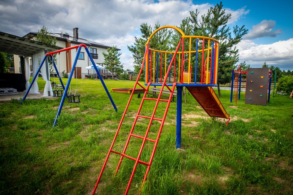 Gościniec otacza rozległe podwórko z zagospodarowanym ogrodem. Drzewa owocowe i krzewy, kwiaty i jurajskie sosny dodają uroku temu miejscu. Zaskoczeniem dla gości mogą się okazać zielone skrzynki, w których rosną warzywa i zioła. Jeśli tylko mają ochotę, mogą korzystać z tego podręcznego zieleniaka. Na posesji wydzielono parkingi oraz przestrzenie do wypoczynku. Jest altana, grill, miejsce na ognisko. Powodzeniem wśród najmłodszych z pewnością będzie się cieszył plac zabaw, rozkładany basen na czas letnich upałów oraz trampolina.