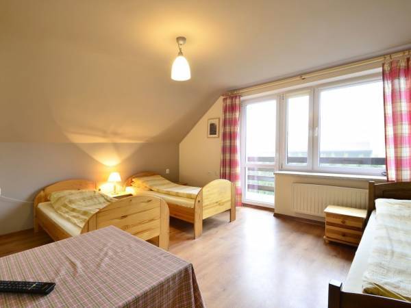Do dyspozycji gości są cztery pokoje. Każdy z własną łazienką wewnątrz pokoju. Oddzielne wejście dla gości, kuchnia w pełni wyposażona i jadalnia niezależna od gospodarzy, plac zabaw i parking dla gości. Do dyspozycji w całym obiekcie WiFi. Sosnowe meble w pokojach stwarzają domową atmosferę. W ogrodzie altana z meblami tarasowymi i grillem.