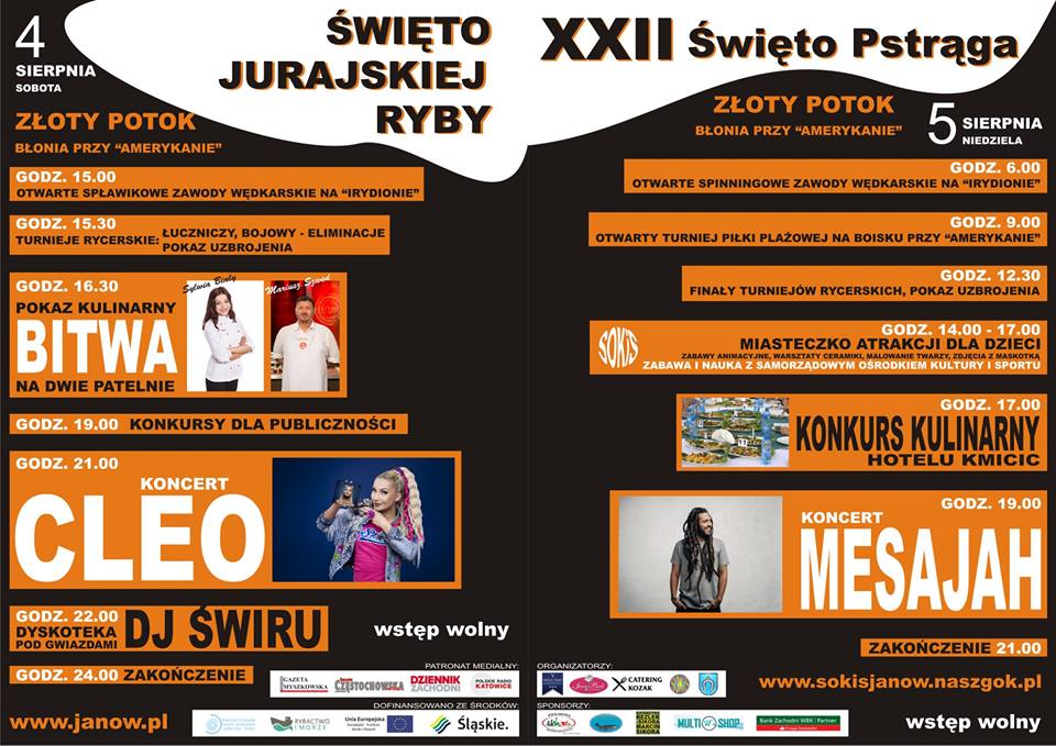 Serdecznie zapraszamy do Złotego Potoku na na Święto Jurajskiej Ryby i 22. Święto Pstrąga, 4-5 sierpnia 2018r.