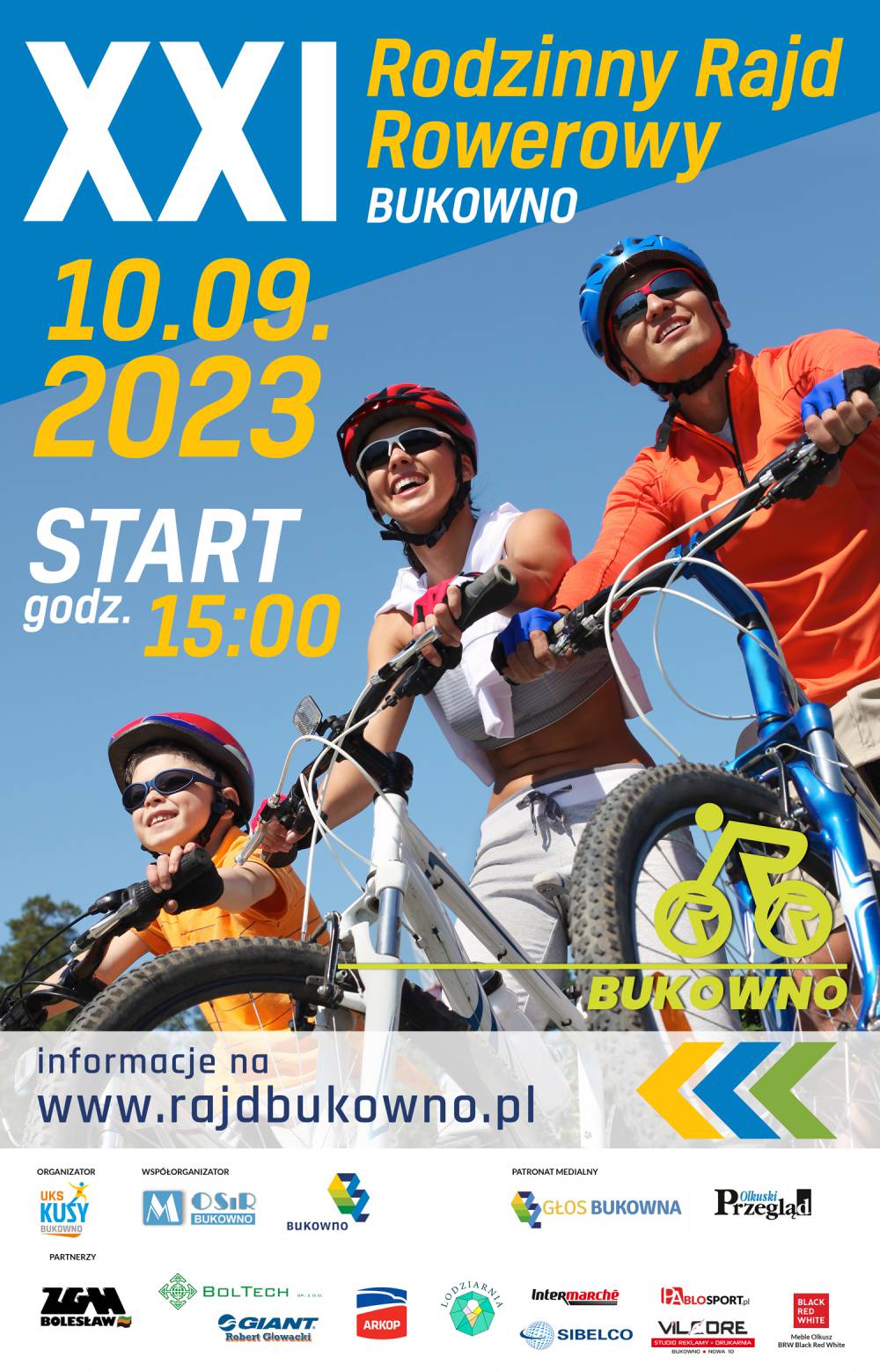 XXI Rodzinny Rajd Rowerowy odbędzie się w niedzielę 10 września 2023 r. Start o godz. 15.00 ze Stadionu MOSiR Bukowno.