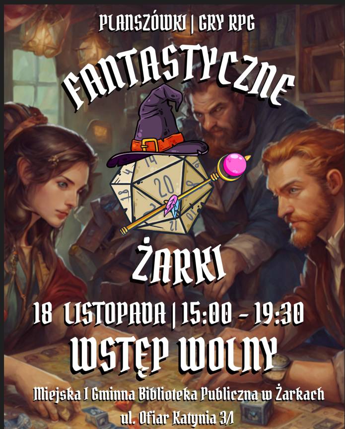 Serdecznie zapraszamy na pierwszy turniej gier organizowany przez Miejską i Gminną Bibliotekę Publiczną w Żarkach we współpracy z LovibondRPG.
