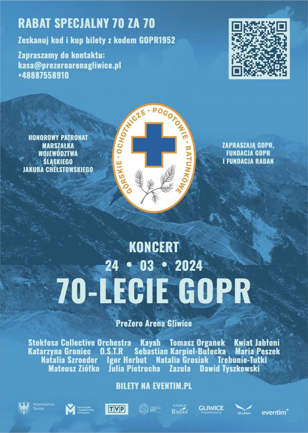 Wyjątkowy koncert charytatywny z okazji 70-lecia Górskiego Ochotniczego Pogotowia Ratunkowego w aranżacji Jana Stokłosy w towarzystwie 40-sto osobowej orkiestry już 24 marca 2024 r. w PreZero Arenie Gliwice.