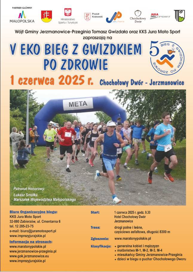 1 czerwca 2025 roku w Chochołowym Dworze w Jerzmanowicach k. Krakowa odbędzie się V edycja EKO Biegu z Gwizdkiem po Zdrowie. Impreza ma na celu popularyzację biegania jako formy rekreacji, promocję walorów turystycznych regionu oraz edukację ekologiczną.
