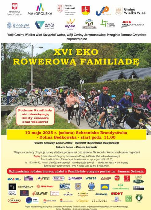 W sobotę, 10 maja 2025 roku, odbędzie się XVI EKO Rowerowa Familiada – rodzinna impreza rekreacyjno-sportowa organizowana przez KKS Jura Moto Sport oraz Stowarzyszenie „Homini et Terrae”.