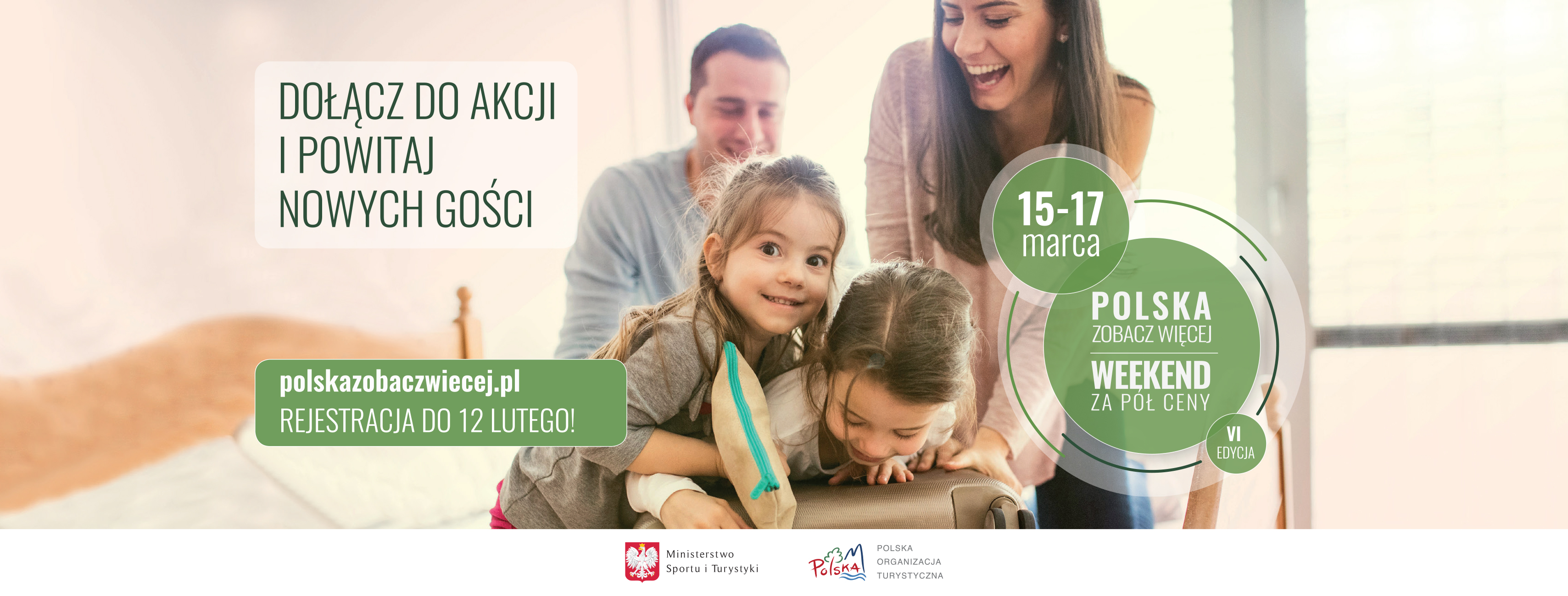 Ruszyły zapisy do kolejnej, szóstej edycji akcji „POLSKA ZOBACZ WIĘCEJ – WEEKEND ZA PÓŁ CENY” organizowanej przez Polską Organizację Turystyczną we współpracy z Ministerstwem Sportu i Turystyki. Wiosenna edycja odbędzie się w weekend 15-17 marca.